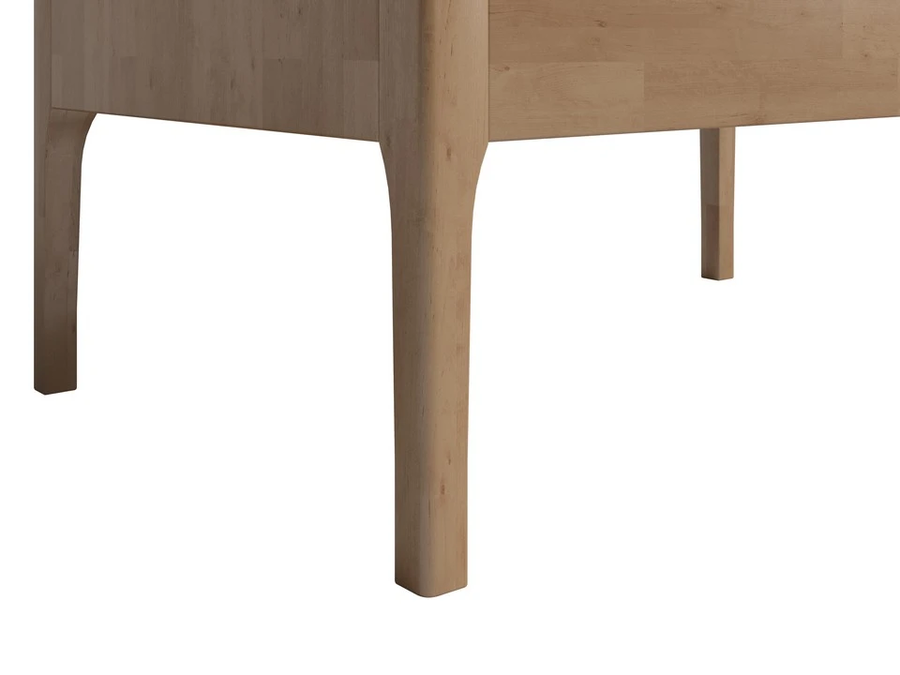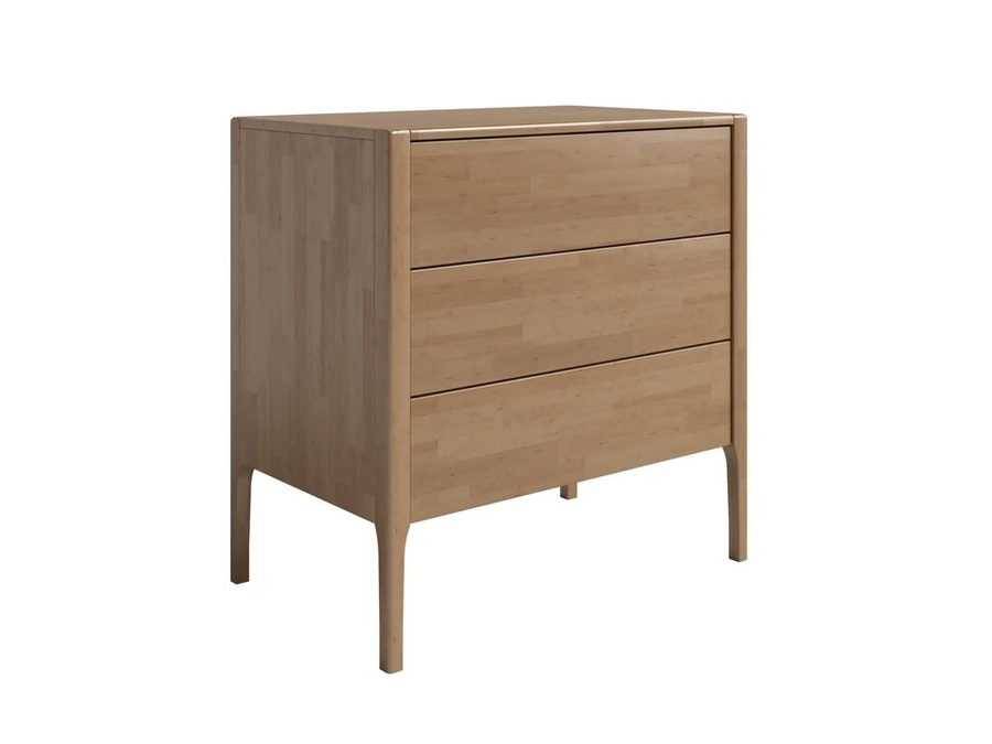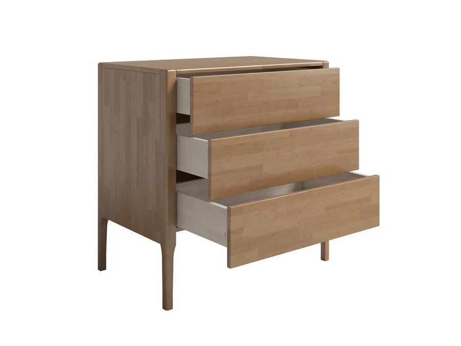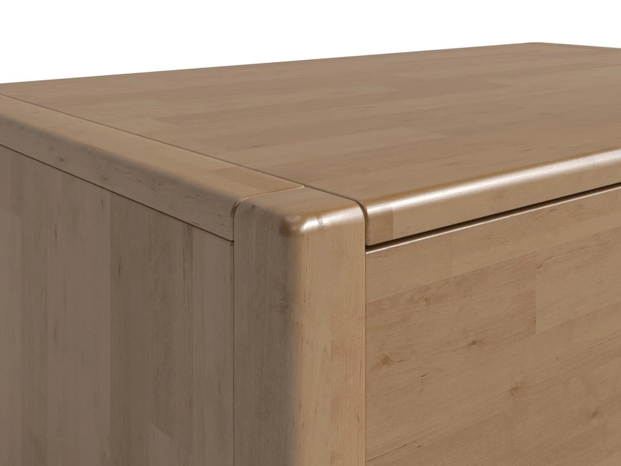 Корпус, фасады и опоры из цельного массива. Скрытые направляющие с толкателем открываются бесшумно и плавно даже при полной загрузке.