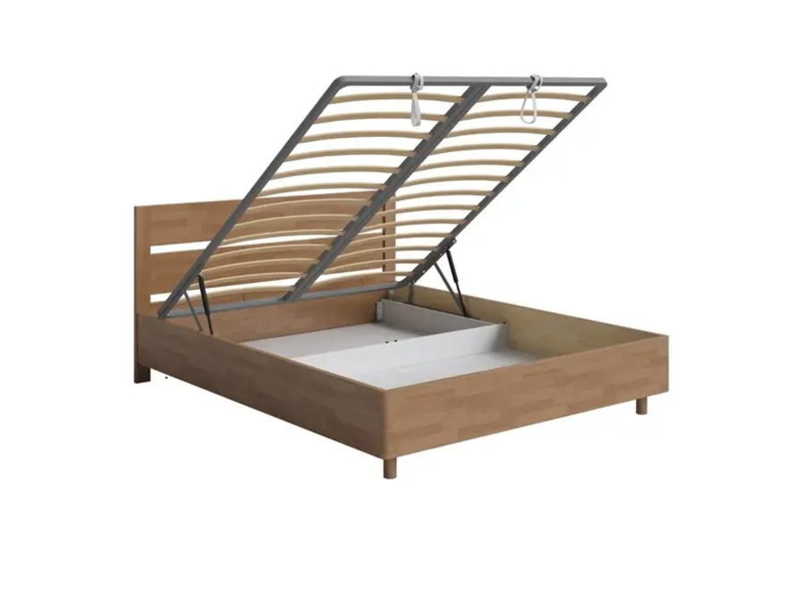 Эта модель сочетает лёгкость и воздушность благодаря ножкам, а подъёмный механизм даёт удобный доступ к глубокому внутреннему отсеку. В результате кровать выглядит компактно, но при этом предоставляет полноценное пространство для хранения.